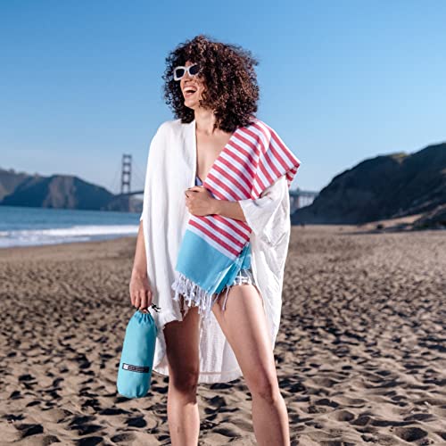 Details: The Bay Laurel Towels with Travel Bag Premium %100 Cotton Turkish Beach Towel that comes in a unique bag to be your indispensable beach bag and towel set when you are going to the beach, travel, camp, or spa. The Bay Laurel provides sand-free beach towels with lightweight and quick dry convenience.